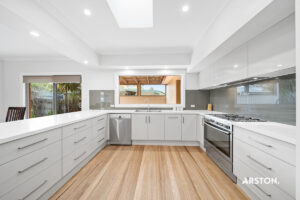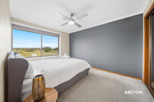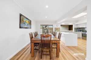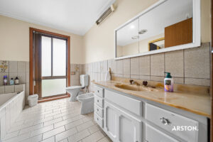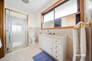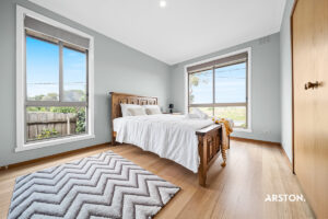 Upstairs, you’ll find the private sleeping quarters comprising three generous bedrooms. The master retreat boasts a walk-in robe and a sleek ensuite, while the additional two bedrooms come fitted with built-in robes and share a second well-appointed bathroom.