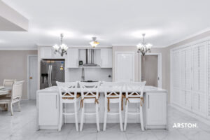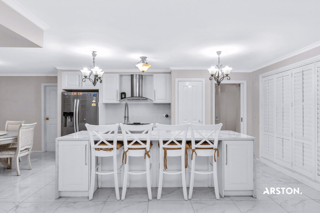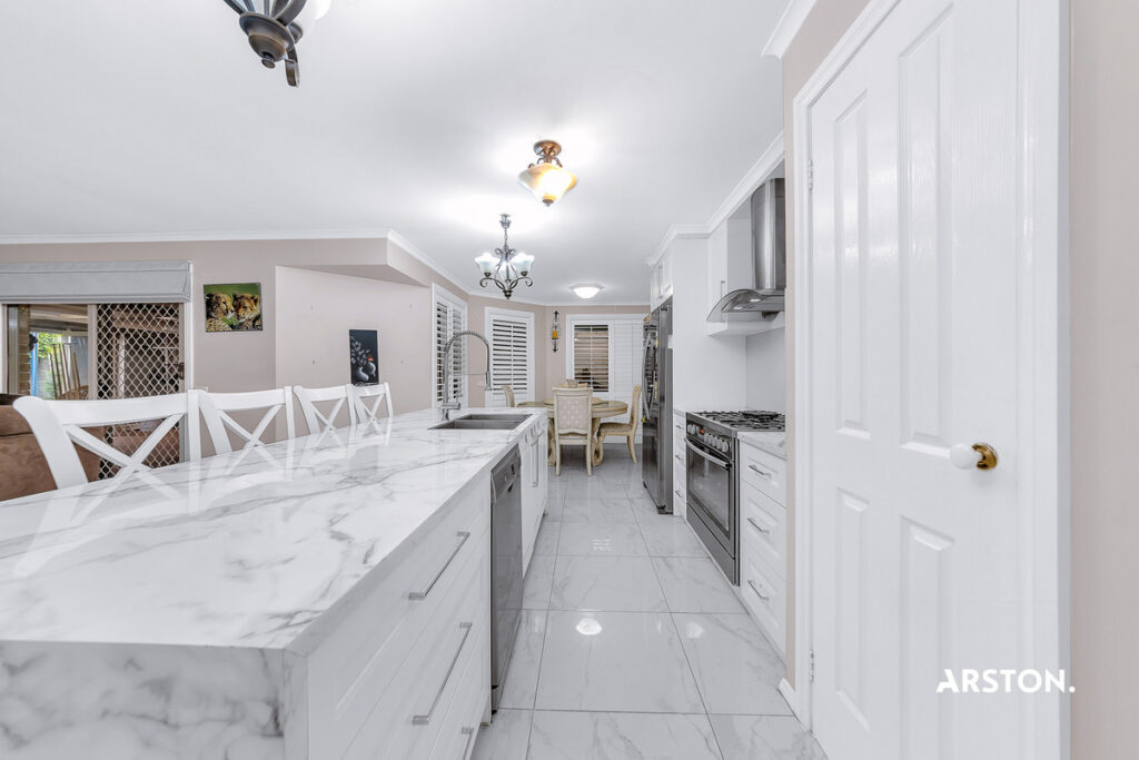 – Fully renovated kitchen with stone waterfall benchtops, soft-close drawers, stainless steel -appliances including a 900mm oven/stovetop and dishwasher, plus a pantry and ample storage.