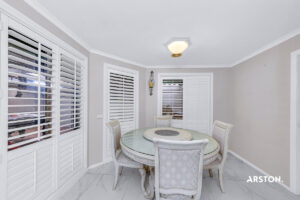 – Stylish plantation shutters fitted to most windows for a modern, sophisticated look.