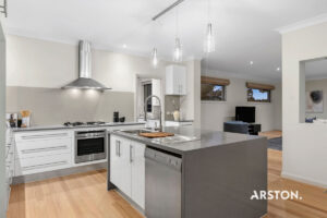 The kitchen is a true highlight of the home, featuring modern cabinetry, high-quality appliances, and generous bench space—ideal for cooking enthusiasts and designed to make meal prep effortless.