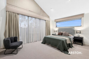 Upstairs boasts three spacious bedrooms, with a huge master suite enjoying panoramic views of the beautiful landscaped backyard from the balcony. Both the ensuite and the central bathroom are sleek and sophisticated, fitted with double vanities, full-height tiles, and designer finishes to elevate your everyday routine.